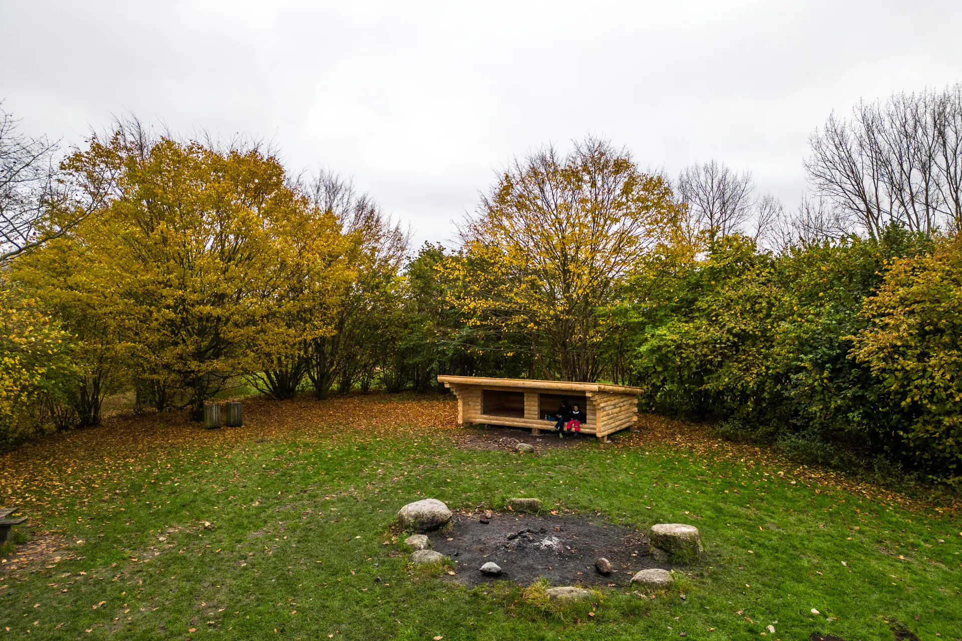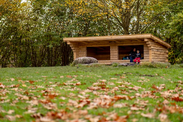 Kunne du tænke dig at sove næsten under åben himmel, så prøv den åbne minibjælkehytte i Træbanken ved Gråpilevej. Der er en shelter med plads til højst otte personer, bålplads, affaldsbeholder og rindende vand.