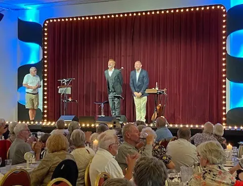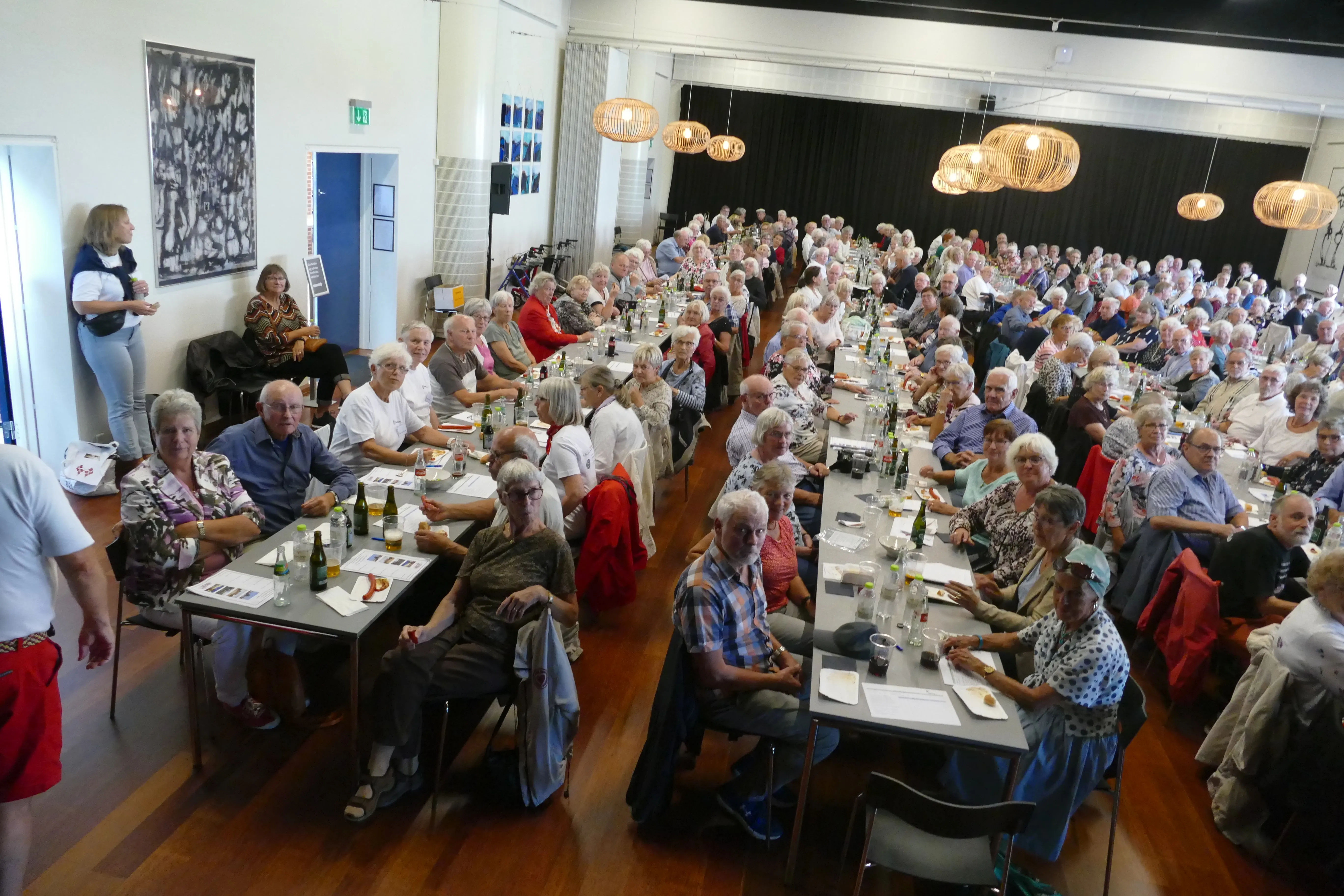 Efter dagens oplevelser kører vi retur til Medborgerhuset, hvor der serveres frokost samt kaffe og lagkage. Efter frokosten vil Michael Carøe og Guldholdet spille et brag af en koncert. Guldholdet er et usædvanligt og erfarent festorkester, som i mange år har fungeret som Michaels Carøe’s faste backingband. De slutter af med en ønskekoncert hvor alt kan ske. Det er absolut ikke usædvanligt at der danses mellem- eller ligefrem på bordene, når først Michael & Guldholdet giver den gas!