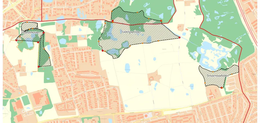 Foldene kommer til at ligge ved Fedtmosen, Smørmosen og Lindholm, og deres placeringer ses på nedenstående kort.