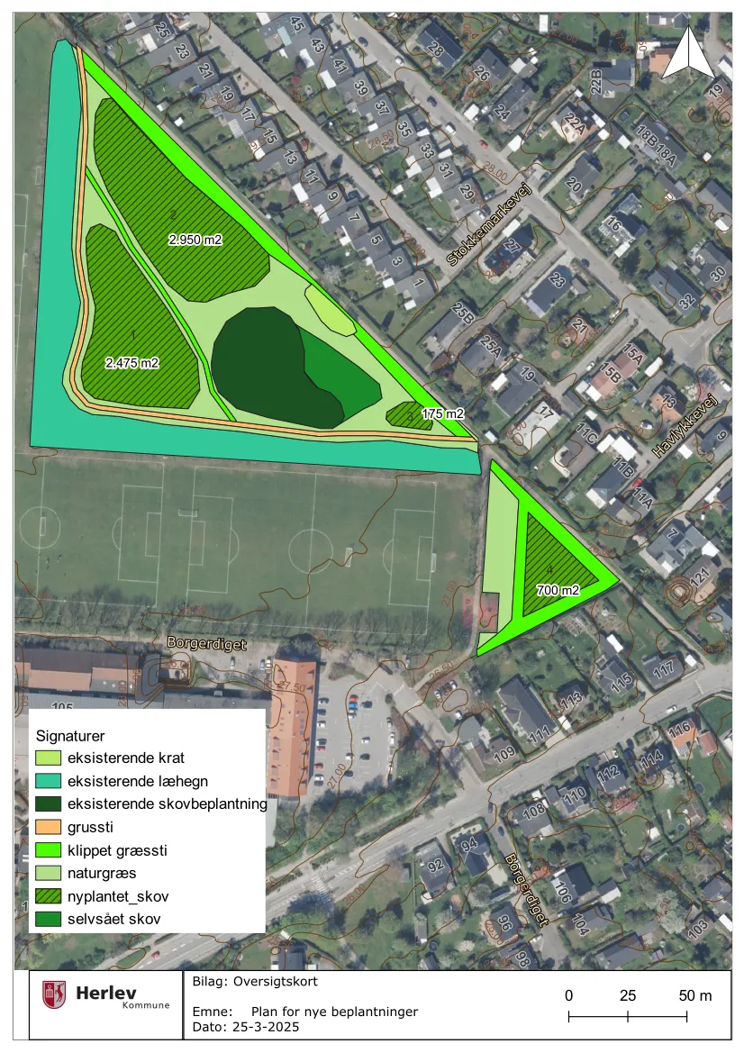Ved Stadionstien nord for Lindehøjskolen plantes 4200 skovtræer og skovbuske i foråret 2025.