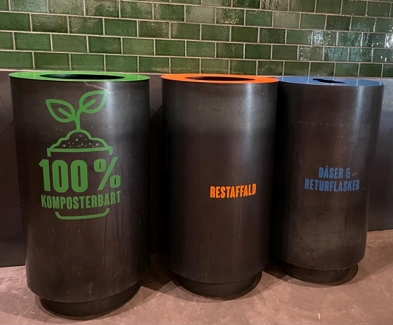 Et af de tiltag som biografen har indført, er komposterbare bægre til sodavand, kaffe og popcorn. Biografen har i den forbindelse også indført affaldssortering, hvor de komposterbare bægre skal i en skraldespand for sig, ligesom at der sorteres pant og restaffald. Biografens personale er ligeledes opmærksomme på at eftersortere affaldet, hvis noget skulle være kommet i den forkerte skraldespand. Biografen har lavet en aftale med et privatejet renovationsfirma, som afhenter det komposterbare affald og sørger for det kommer det rigtige sted hen. Biografchefen fortæller, at biografen ved at udskifte deres bægre har reduceret mængden af restaffald væsentligt.